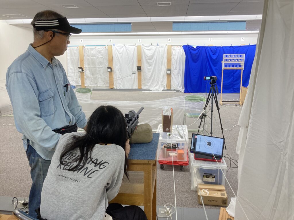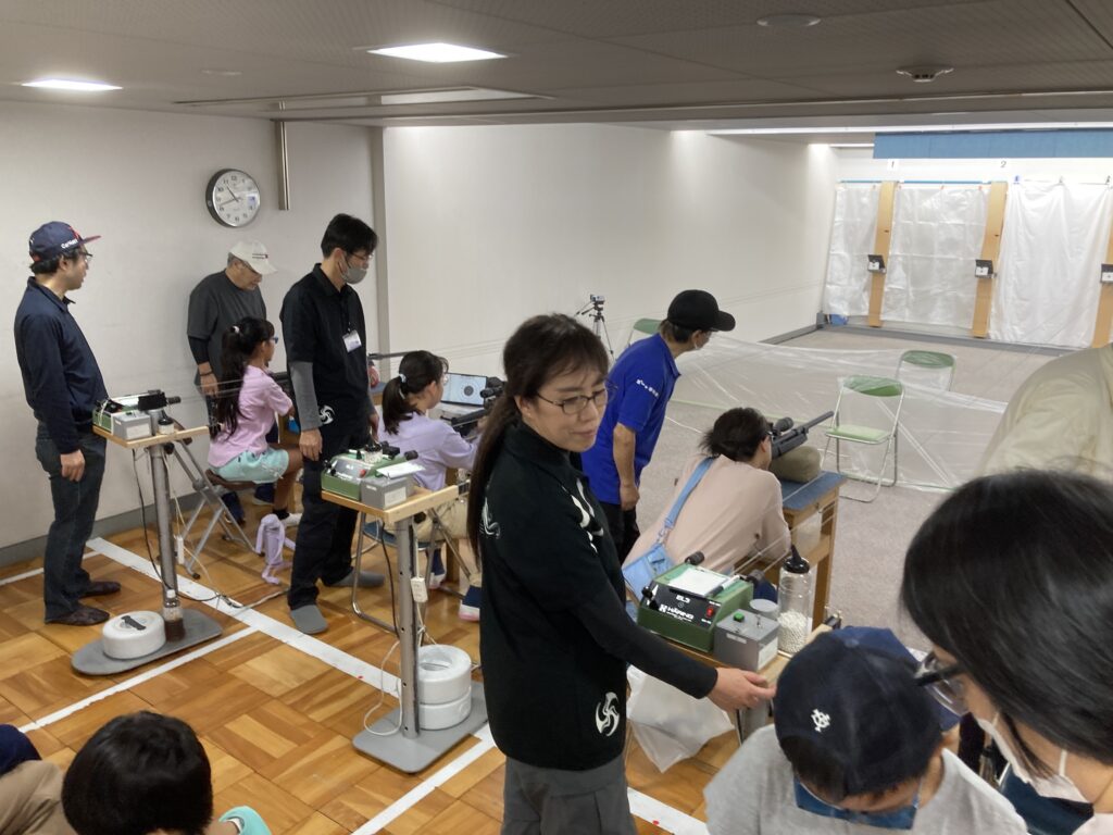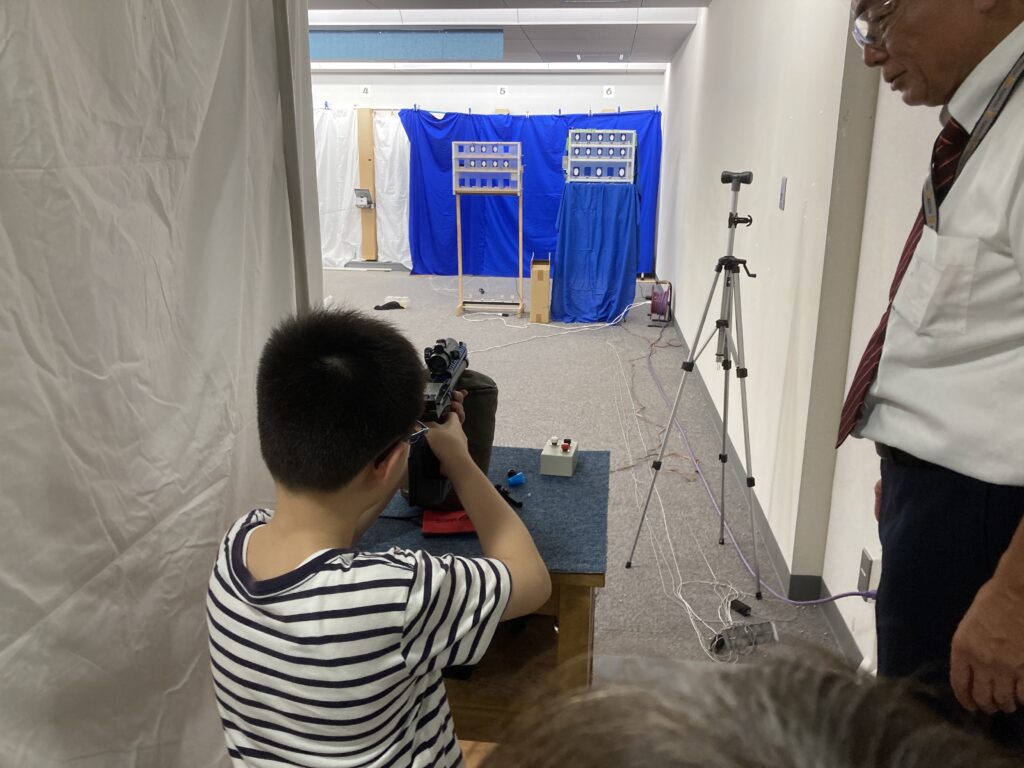 足立区ライフル射撃連盟で、地下射撃場で「エア・プレシジョン・シューティングに挑戦!」と銘打ってAPS体験コーナーを開きました!ライフル4射座とハンドガン4射座を設置し、有資格の指導員を配置して、皆さんに楽しんでいただきました。